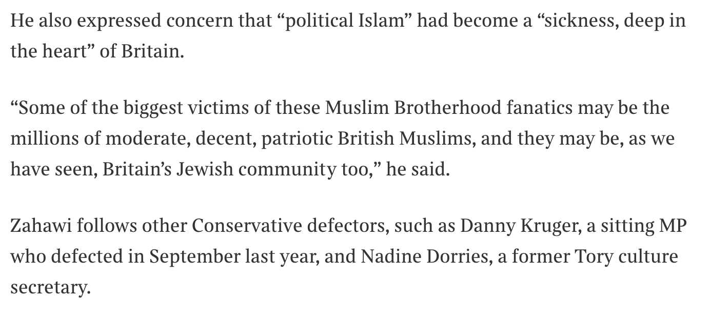 Hence, and on national security matters, there is less concern that Zahawi understands the dangers of the Islamist ideology. This much, at least, fits the Reform base.