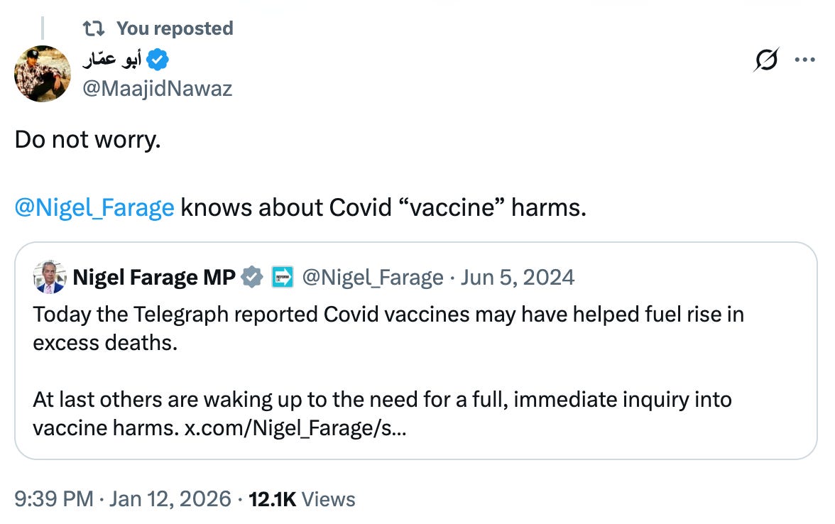 It is, though, reference made to ‘vaccines’ in his own video and elsewhere by the man who delivered them to the nation, that irked much of Farage’s online base after this defection.
